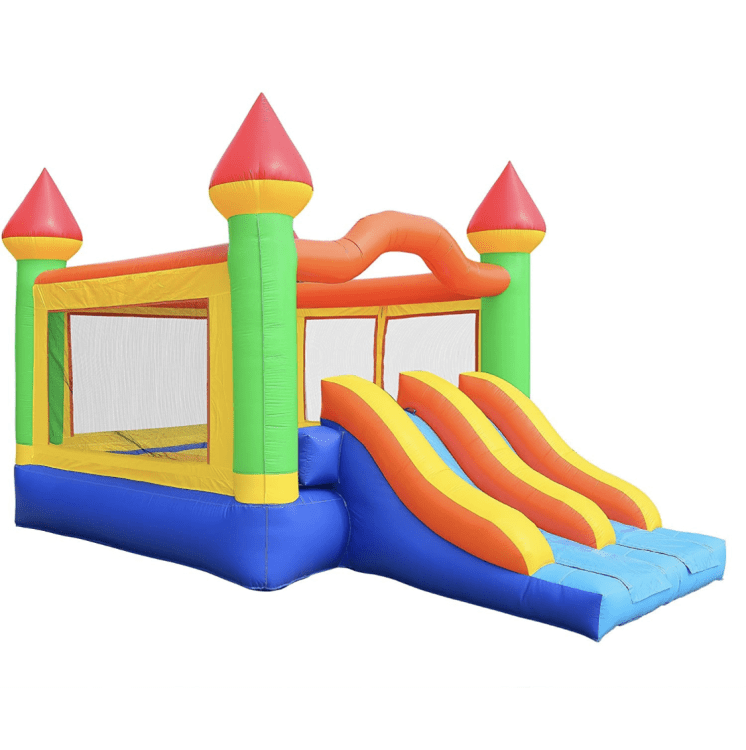 Rainbow Cloud Slip N SlideChoose Inflatable (Packages A, B, E):Rainbow Cloud Slip N Slide1Dropdown02976291_29638070100A bright, rainbow-and-cloud themed Slip N Slide that turns a backyard into a wet, fast run of giggles. Kids dash, slide, and splash along a soft, slippery lane with a cushioned landing. This unit can also be connected to our 18ft Rainbow Cloud Waterslide to become a 56ft long waterslide with a slip n slide attached! Rainbow Mega Castle BouncyChoose Inflatable (Packages A, B, E):Rainbow Mega Castle Bouncy1Dropdown02976291_29598970100Double Slide Rainbow Castle Bounce House. Dry only. A colorful inflatable packed with fun, combining a bouncy play area and an attached slide for nonstop jumping and sliding action.
