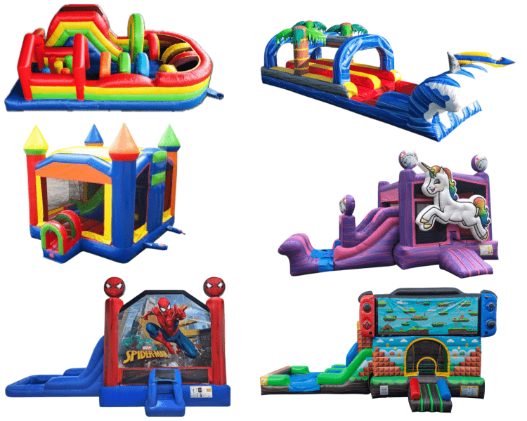• OCCUPANCY: A maximum of 5-9 kids of equal size at one time for bounce houses, 1 person at a time for slides, 2 people at a time for obstacle courses and dual lane slip n slides is what most inflatable manufacturers recommend.