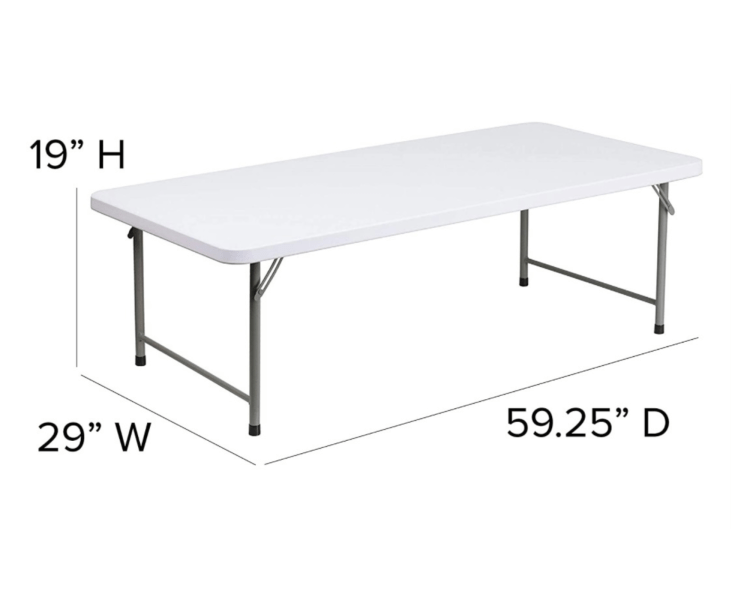 Price is per table, please add the quantity you need. Shorter height white plastic kids table rental. 5ft long. Seats 6 kids. Tables may have scuffs & marks that develop over time with use so we recommend using table cloths. Please note we do not set up tables & chairs. If you require set up, it is an additional charge. Please reach out for a quote if needed. Kids tables for rent in the Phoenix/Glendale areas & surrounding cities. Delivery fees calculated at checkout.