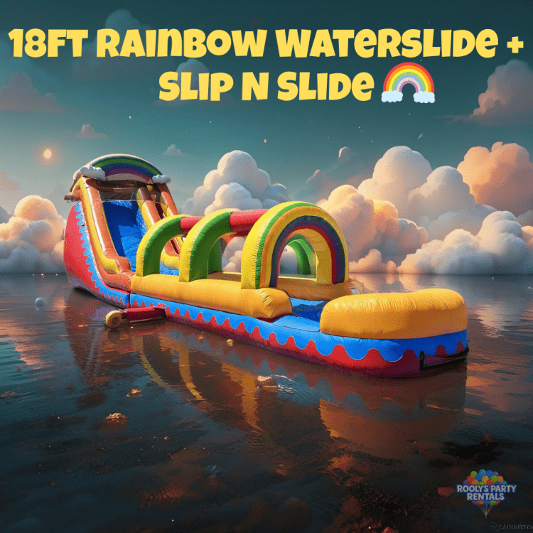 Looking for the best waterslide rentals in Phoenix/Glendale? Look no further! We offer a wide range of colors and designs for both big and small water slides rentals. Our water slide sizes start at 13ft tall and go up to 18ft high! Our slides can also be used dry as well for those winter parties! We even have slip n slides that can be attached to some of our waterslides for ultimate fun! Kids can slide down the big slide and through the entire length of the slip n slide and land in the attached pool at the end! We have a variety of neutral and themed waterslide options from palm trees, dinosaurs, dolphins, blocks, rainbow clouds, and more! Our water slides all have attached pools at the end. All you need is a hose and water source for us to attach to the slide. When you turn the hose on, water will spray down the slide and into the attached splash pool! Be sure to select a water slide that's suitable to the age of your youngsters and the number of guests. Most slides can accommodate between 10 and 20 guests, provided you are prepared to wait a little. We will secure our slides with stakes or sandbags to ensure they're secure and safe. We are confident that no matter what water slide you rent from us, you will be pleased and will be looking to rent again in the future! We offer some of the best waterslide rentals in the Phoenix/Glendale areas! Make your next party a hit and book your waterslide today! We even offer free overnight waterslide rentals!